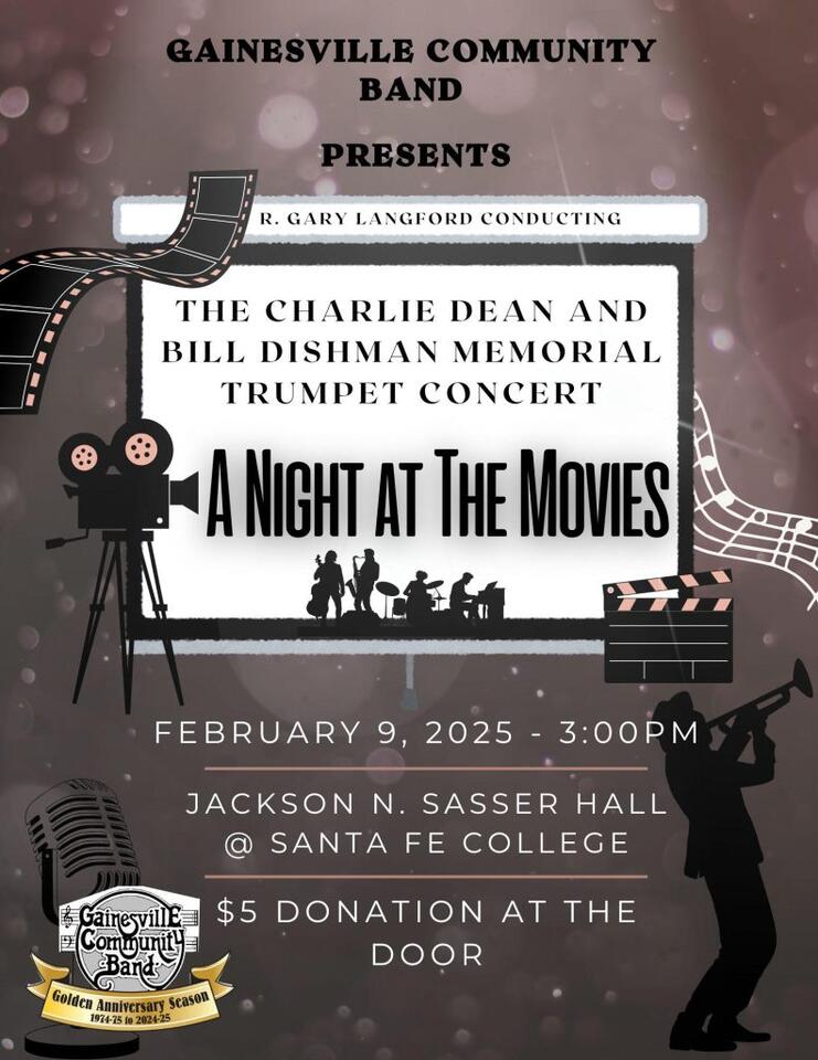 Gainesville Community Band presents ‘The Charlie Dean and Bill Dishman Memorial Trumpet Concert: A Night at the Movies’ on Feb. 9